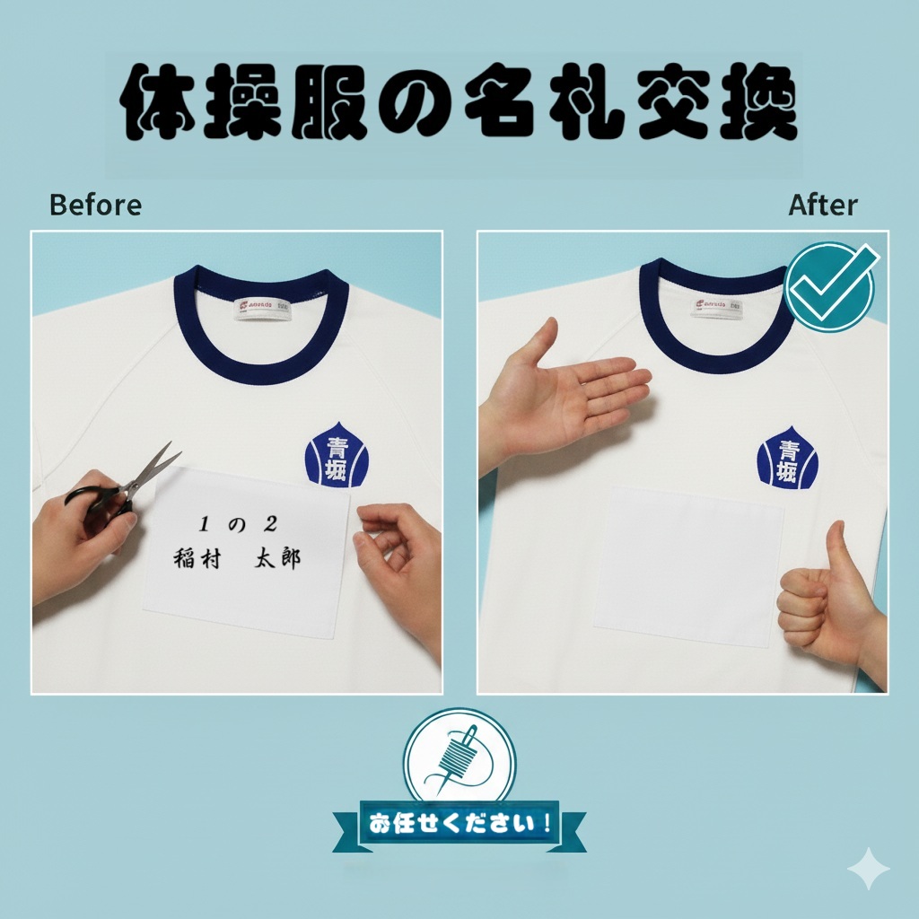体操服を付け替えた場合の直し代と名札の合計金額です。